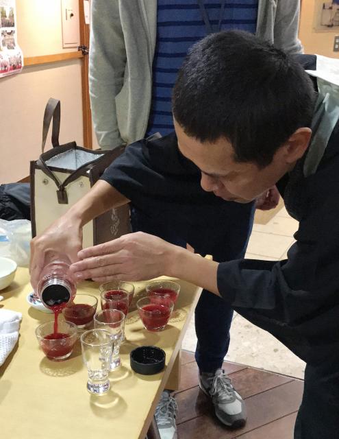 群馬から取り寄せたすっぽんをノッチさんが調理し、、、まずは、生き血で乾杯!!