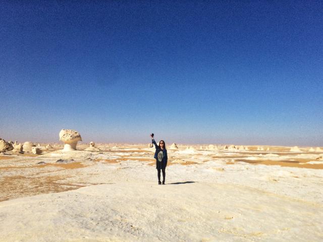 白砂漠と呼ばれる場所見渡す限り、地平線の彼方まで白い石灰を被った砂漠が広がる様は圧巻!」