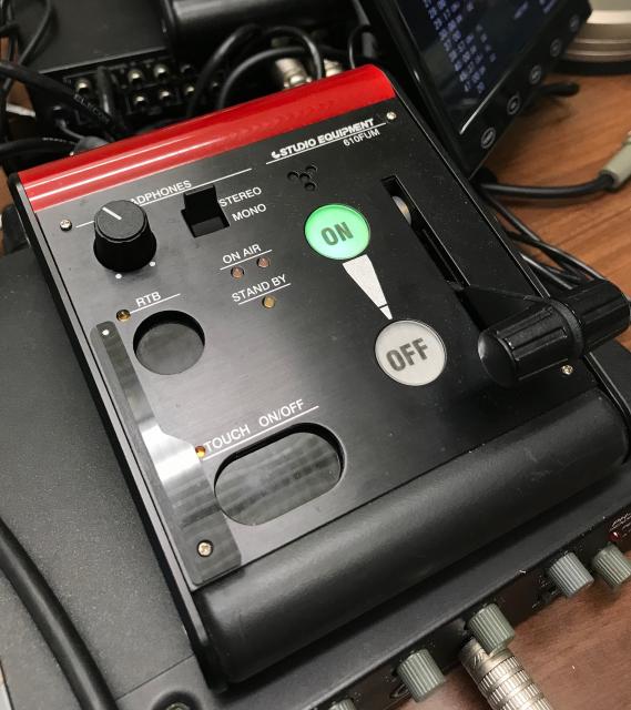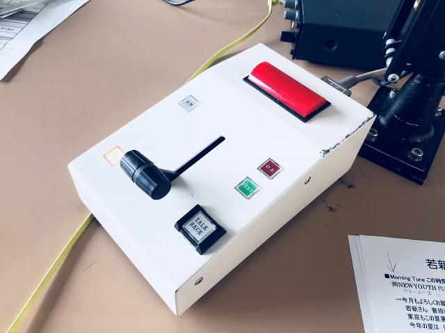 ラジオブースの中にあるマイクのオンオフスイッチ