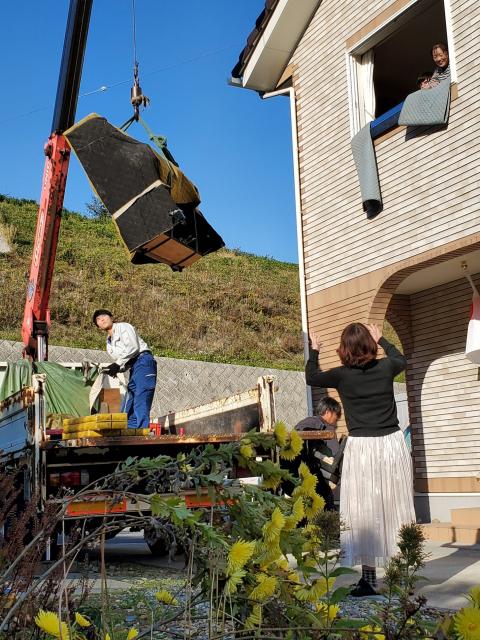 ピアノは外から2階の部屋に搬入しました!