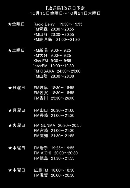 詳しくは10月以降の各局タイムテーブルをご確認ください。