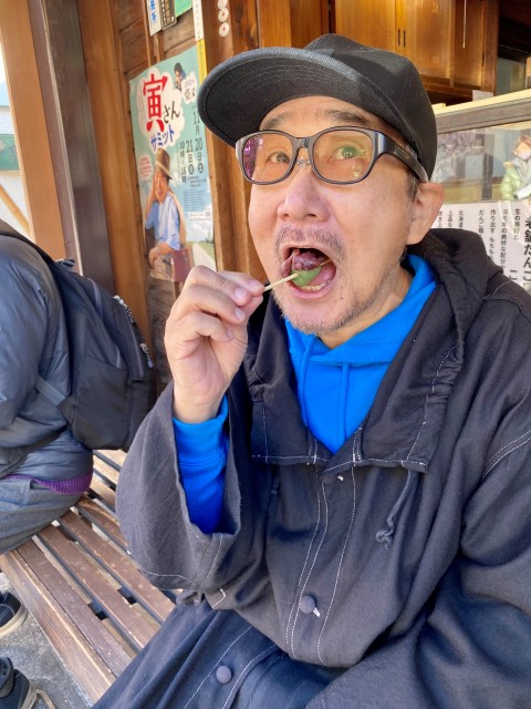 そして、映画『男はつらいよ』と縁ある<高木屋老舗>さんにお邪魔してお団子を頬張るChageさん。