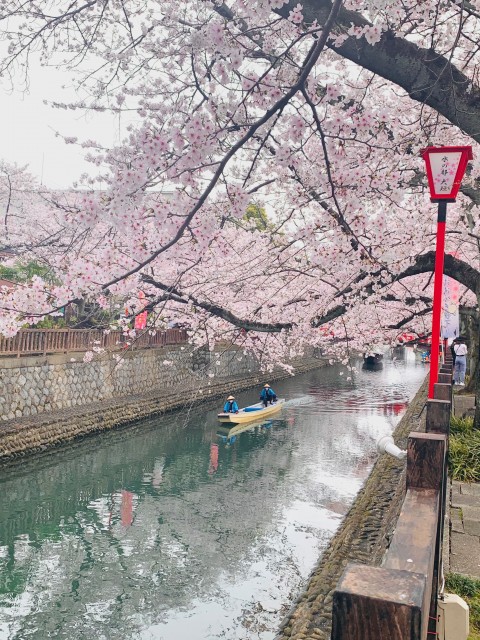 桜の名所として知られる水門川が流れ、ちょうど満開を迎えていました。