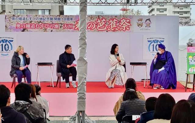 前園 「桜人」という言葉があるのかどうかはわからなかったんですけど、先ほど橋のたもとに行ったときに、たくさんの方が桜を愛でていらっしゃって、ここは松尾芭蕉の旅の終わりの地ですから「ここで終わったんだな」と思いをはせたり、もしかしたら過去のこととか未来のこととかに思いをはせたり、それぞれがいろんな思いでいらっしゃるのかなと思ったので詠ませてもらいました。